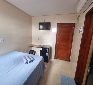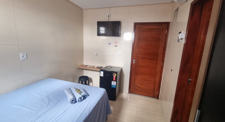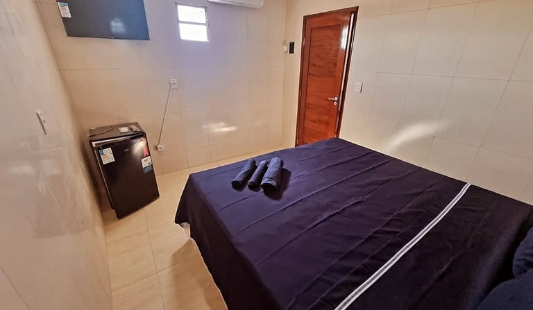 Desfrute de um quarto confortável no centro de Macau/RN, ideal para viajantes a negócios ou turismo, garantindo um descanso revigorante após um dia agitado.